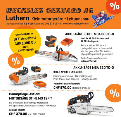 Verkauf und Service von Kleinmotorgeräten in unserem Verkaufsladen in Luthern.